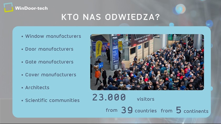The WinDoor-tech fair, organized every two years, will return on a grand scale on February 11-14, 2025, preparing the most modern and largest exhibition dedicated to joinery in this part of Europe. Traditionally, the WinDoor-tech fair is held on the same date as the BUDMA fair. The exhibition will also include a rich offer related to the glass industry.