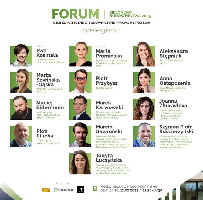 Jak nadchodzące regulacje unijne – od Dyrektywy EPBD po Rozporządzenie CPR – mogą zmienić zasady gry w branży budowlanej? Jak przekształcić wymagania prawne w przewagę konkurencyjną? Jak zbudować strategię, która nie tylko spełni wymogi, ale otworzy nowe możliwości rynkowe? – odpowiedzi na te pytania będzie można poznać na FORUM ZIELONEGO BUDOWNICTWA. Wydarzenie odbędzie się12 lutego, w drugim dniu targów (pawilon 10, godz. 12.30).